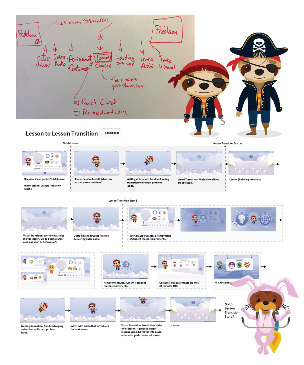 Sprint Deliverables: After the three key stakeholders were satisfied, I worked with the designers to create keyframes of an experience and write up the process rules for conditional parts of the experience.
